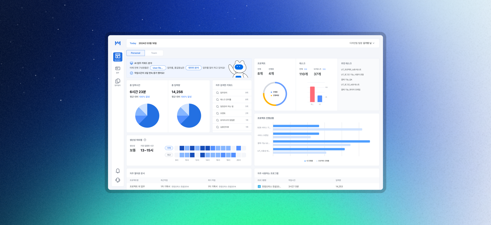 키보드, 마우스 이벤트를 수집하여 개인의 업무관리에 생산성을 더합니다.